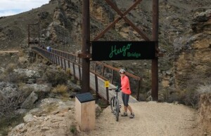 The ride has two very different sections Old Cromwell (Smiths Way) to Cornish Point – great Grade 1 riding along Lake Dunstan and the Kawarau River. Visit the Vineyards, cafes and Hotels along the way. Once you pass Cornish Point the trail changes to Grade 2 and Grade 3. This section is highlighted by the stunning engineering associated with the cantilevers. You need to be prepared for climbing switchbacks (Cairnmuir Ladder has 9 of them), steep drop offs, narrow trail spots while riding on loose gravel. You will need to be competent and confident with cycling on these type of trail features and surfaces to enjoy this experience. Coffee Afloat beckons at the base of the Cairnmuir Ladder – allowing for a recharge before those switchbacks.