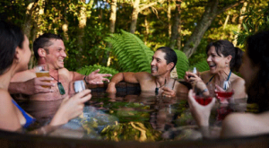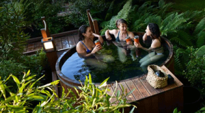 Indulge in tranquillity with a soak in private cedar hot tubs nestled among ferns, overlooking the serene Whakarewarewa Forest and Puarenga Stream. Perfect for unwinding with family or friends, these 39.9°C non-geothermal tubs offer 45 minutes of pure relaxation, with drinks just a button away. By day, enjoy the natural beauty of ancient trees, and by night, marvel at the forest illuminated by colourful lights. After your soak, treat yourself to a complimentary "shinny dip" foot tub at the Basecamp café while sipping a beverage or enjoying a delicious bite to eat.
