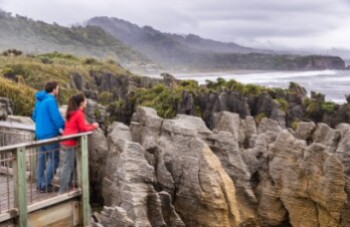Wandering Hokitika’s windswept shore on the West Coast feels a bit like you’ve discovered the end of the Earth. Then soak in the natural surroundings as you head to Punakaiki to view the Pancake Rocks and Blowholes, where waves thunder through cracks in the Earth. This is the soundtrack that lulls you to sleep at tonight’s eco-resort.