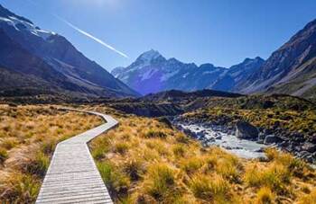 Travel through the southern Canterbury Plains to Lake Tekapo. See the brilliant turquoise water, the Church of the Good Shepherd and the Sheep Dog Statue. Marvel at the spectacular mountain ranges including Aoraki/Mt Cook, New Zealand’s highest peak. The opportunity is available to enjoy a scenic flight (optional, weather permitting) over the Southern Alps.